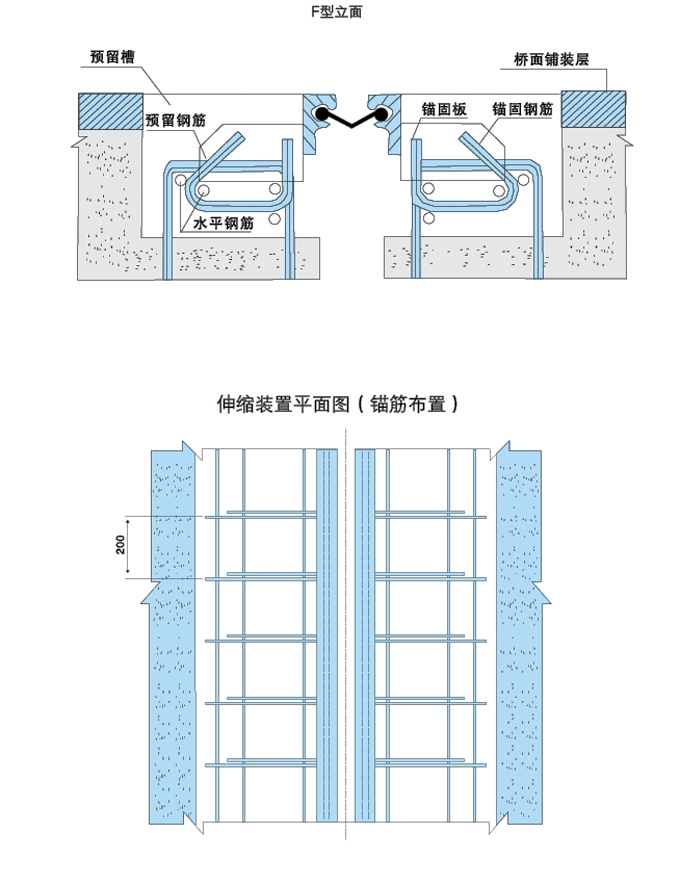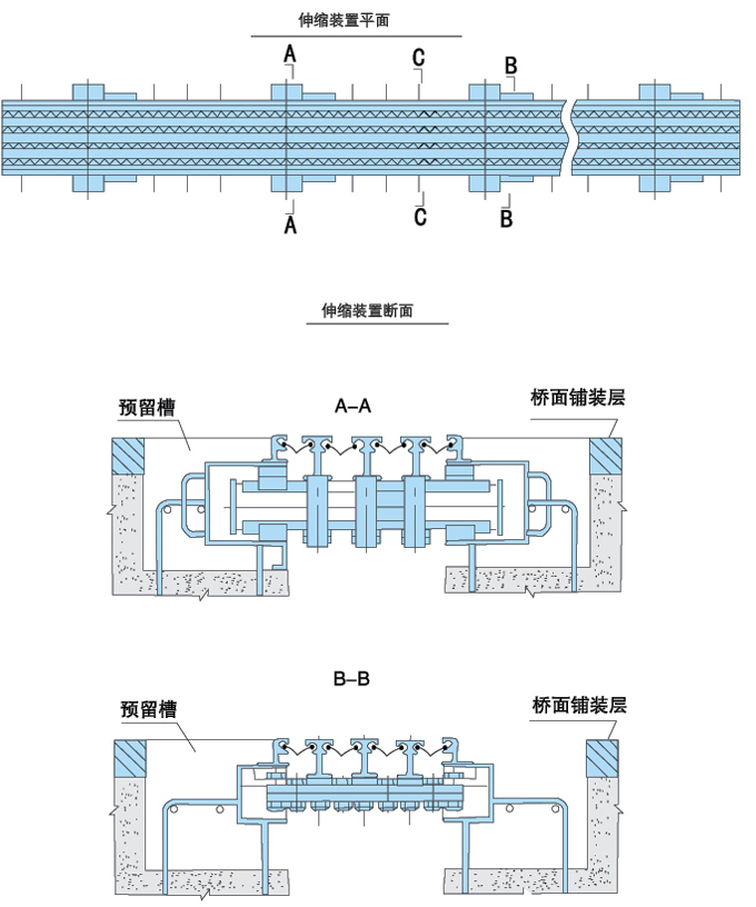 二、伸縮量0-80mm伸縮裝置典型結(jié)構(gòu)布置圖